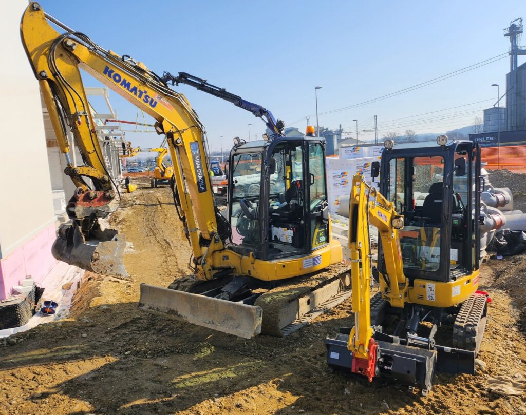 Opravljamo strojne izkope za temelje, komunalne vode in ureditev terena.